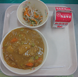 ポークカレー、牛乳、こんにゃく寒天サラダ