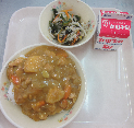 ごはん、牛乳、こづゆ、わかめの酢の物