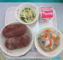 ココア揚げパン、牛乳、ポトフ、フレンチサラダ