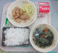 ごはん、牛乳、鶏肉のごまみそ煮、キャベツの和え物