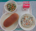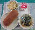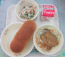 減量コッペパン、牛乳、汁ビーフン、まめまめサラダ