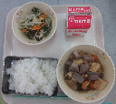 ごはん、牛乳、筑前煮、千切大根の和え物、ひじきのり