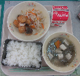 ごはん、牛乳、がんもどきの甘辛炒め、北方団子汁