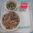 おいしさぎゅーっと丼、牛乳、ひじきの和え物