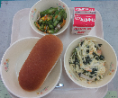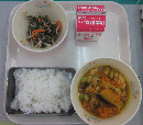 ごはん、牛乳、かぼちゃのそぼろ煮、ほうれん草のおかか和え