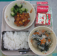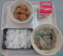 ごはん、牛乳、がんもどきの甘辛炒め、北方団子汁