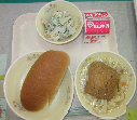 コッペパン、牛乳、高菜ビーフン、枝豆サラダ