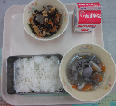 ごはん、牛乳、ひじきの炒り煮、けんちん汁
