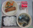 ごはん、牛乳、春巻き、ナムル、中華スープ
