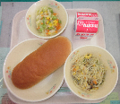 コッペパン、牛乳、高菜ビーフン、枝豆サラダ