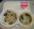 ごはん、牛乳、鯛のしそ風味揚げ、添え野菜、沢煮椀