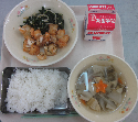 ごはん、牛乳、いわししょうが煮、三色和え、豚汁