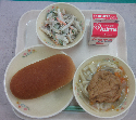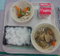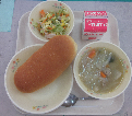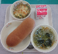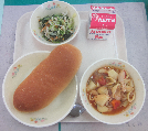 キャロットパン、牛乳、ポトフ、チーズサラダ