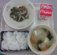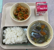 ごはん、牛乳、がんもどきの甘辛炒め、北方団子汁