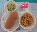減量コッペパン、牛乳、ミートソーススパゲティ、フレンチサラダ