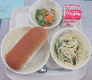 ミルクパン、牛乳、ミネストローネ、アーモンドサラダ