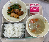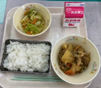 ごはん、牛乳、鶏肉の西京焼き、添え野菜、千切大根のみそ汁