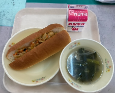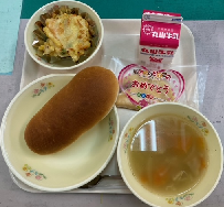 減量コッペパン、牛乳、グラタン、具だくさんスープ、