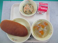 ミルクパン 牛乳 野菜スープ 魚のみそマヨネーズ焼き