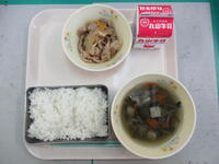 今日の献立ではドウジョウの代わりに豚肉を使い、しょうゆベースの煮汁で甘辛味に仕上げています。江戸時代から庶民に親しまれた下町生まれのどじょう料理で、どじょうは古くから関東地方の名産です。名前の由来は日本橋で料理を考案した店の屋号からや、福岡の水郷柳川からとも言われています。