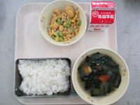 ごはん 牛乳 タラの三平汁 豚肉と野菜の和風ソース和え