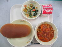 コッペパン 牛乳 野菜スープ 鶏肉のレモン和え 添えキャベツ