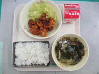 ごはん 牛乳 わかめスープ ヤンニョムチキン