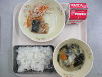 ごはん 牛乳 野菜のみそ汁 さばの生姜煮 添え野菜