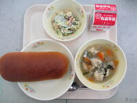 黒糖パン 牛乳 肉団子のスープ ごまネーズサラダ