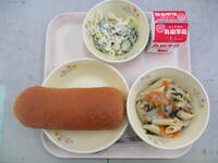 コッペパン 牛乳 オニオンスープ 魚のレモン和え 添えキャベツ