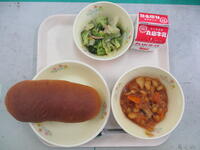 こっぺぱん 牛乳 ポークビーンズ ブロッコリーサラダ