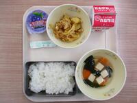 麦ごはん 牛乳 かきたま汁 豚肉のしょうが焼き