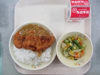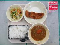 今日は勝カレーのとんかつについてのお話です。中学3年生のみなさんの中には、試験を明日に控えている人もいます。今日は、中学3年生のみなさんが試験やこれからの高校生活、新生活を頑張っていけるように、そして中学3年生以外のみなさんも、寒さに勝つようにというたくさんの思いを込めています。とんかつは1枚1枚、調理員さんが丁寧に揚げました。給食センターからみなさんを応援しています。