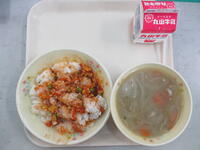 今日は中学2年生リクエスト献立の『豚キムチ丼』です。