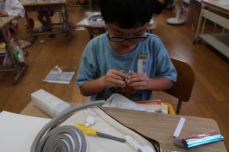 図工で、「すきまちゃんのすきなすきま」という学習をしました。