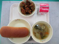 コッペパン 牛乳 五目スープ たこ焼き風