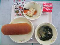 コッペパン 牛乳 カラフルスープ 魚のマヨソース焼き ひなあられ