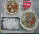 ごはん、牛乳、かきたま汁、さんまのゆずみそ煮、ゆでもやし
