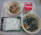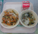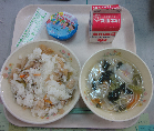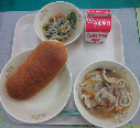 減量コッペパン、牛乳、肉うどん、ちりめん和え