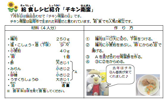 今日は7月8日、語呂合わせで「チキン南蛮の日」です。