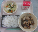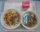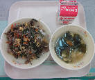 宮崎牛ビビンバ、牛乳、わかめスープ