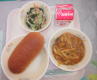 減量コッペパン、牛乳、カレーうどん、海藻サラダ