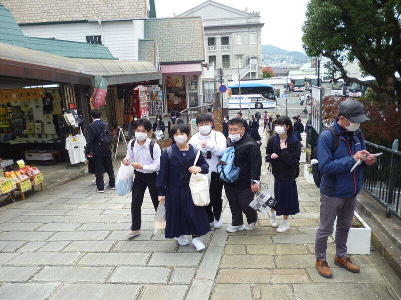 集合場所「オランダ物産館」へ行く途中の様子です。班全員でしっかり行動できていました。
