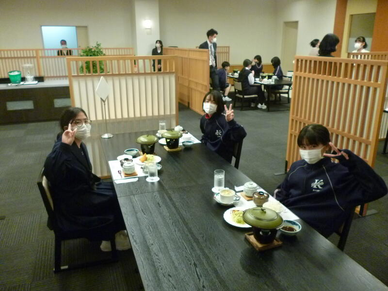 夕食は、本校だけの宿泊でしたので、広いスペースでゆっくり食事を楽しむことができました。