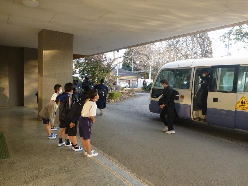 本校では、毎朝、スクールバス4台が7時45分ごろに到着します。その時間前になると、1年生や5年生の児童数名が玄関前にやってきます。そして、下車する児童生徒たちや職員に「おはようございます!」「おはようございます!」と、元気な声であいさつをしてくれます。誰に言われたわけでもなく自主的に取り組んでいます。職員も朝から元気をもらっています!