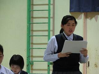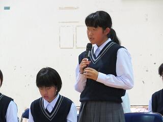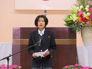 生徒代表の柴田珠里さんがお礼の言葉を述べました。