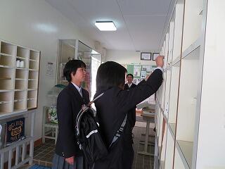 先輩方が靴箱でお出迎え。「おめでとう」の言葉とともに