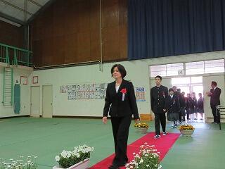 緊張した面持ちで担任の佐藤先生に続いて入場しました。