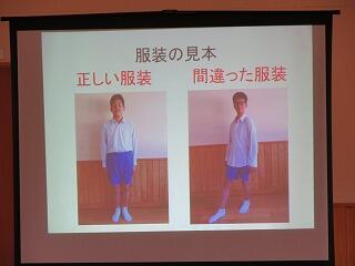 生徒会役員の紹介と役員による北川中の1日の流れの劇、行事紹介があり