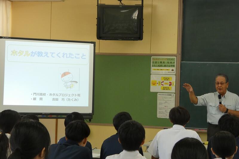 10月10日(金)に門川高校の吉田巧先生を講師としてお招きし、ホタルの幼虫の生態について教えていただきました。その後、それぞれの学年に分かれて、吉田先生、地域の方々(竹林さん、柴田さん)と一緒にホタルの幼虫を飼育する水槽の設置を行いました。これから、いよいよホタルの飼育がスタートしていきます。